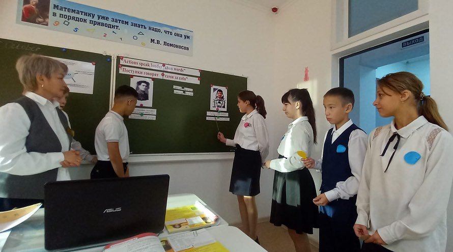 2023 жылы 18.10., гуманитарлық цикл мұғалімдерінің апталығы аясында 6-сыныпта "Nationale hero "тақырыбында ағылшын тілінен ашық сабақ өткізілді